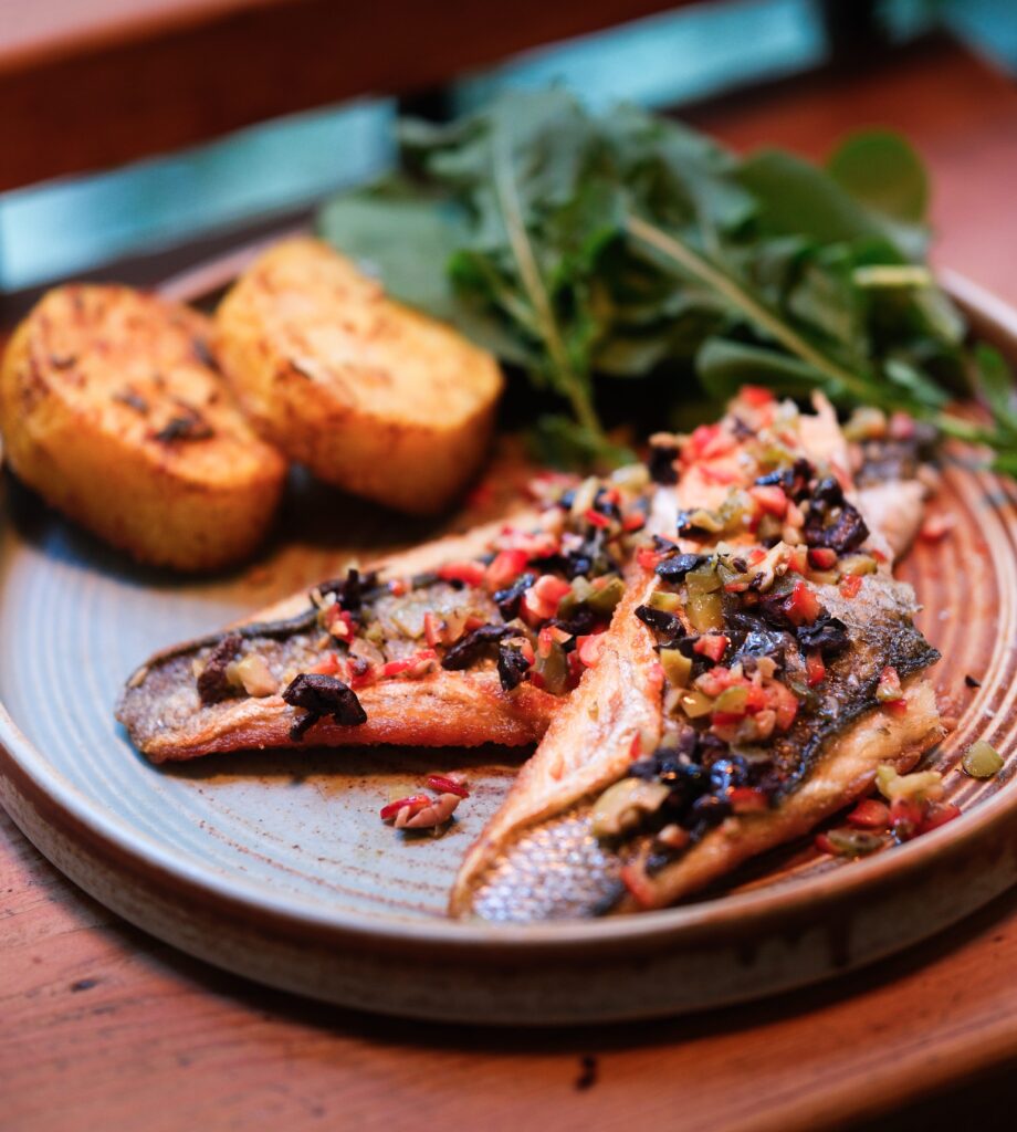 Levrek Balığı, Kişniş, Limon, Şili Biberi, Roka, Patates / Sea Bass, Coriander, Lime, Chile Pepper, Arugula, Potato